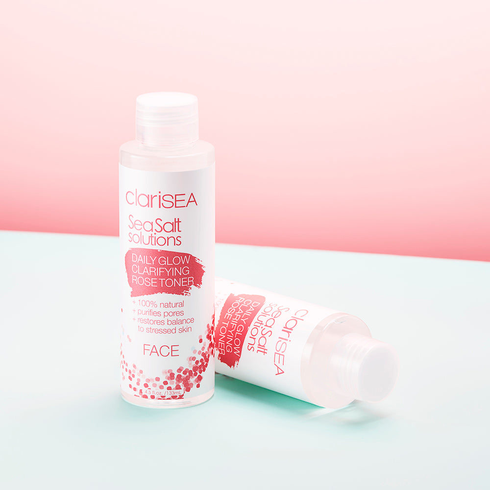 This Daily Glow Clarifying Rose Toner helps decongest pores while restoring balance and clarity to stressed, blemish prone skin.
